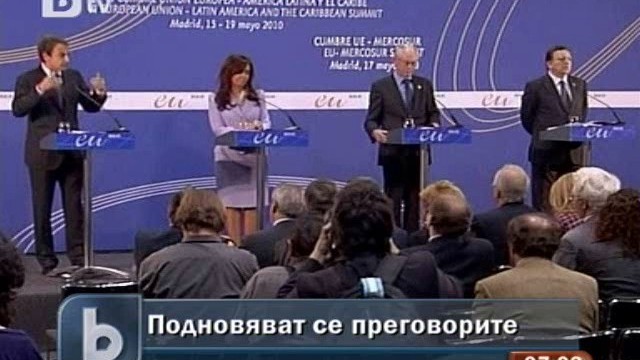 Европейският съюз и страните от Латиноамериканския търговски съюз Меркосур се договориха да подновят официално преговорите за създаване на зона за свободна търговия между тях, която ще обедини 800 милиона души.