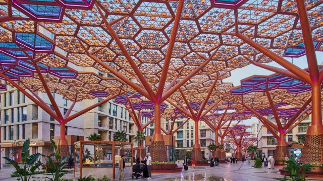 Освен климатизацията, кристалните дървета създават уникален визуален пейзаж, често споделян в социалните медии. В пода на алеята са вградени около 180 кристални панели, съдържащи изложби с теми като пустиня, сняг, гора, море и индустрия. Там могат да се видят експонати на животни, пейзажи и културни мотиви, включително камилски кервани и музикални инструменти, които впечатляват както децата, така и възрастните.