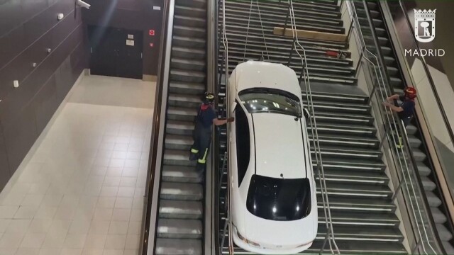 Във вторник (23 август) испански пожарникари извадиха открадната кола, която се заби на стълбището на автогара в Мадрид след полунощ.